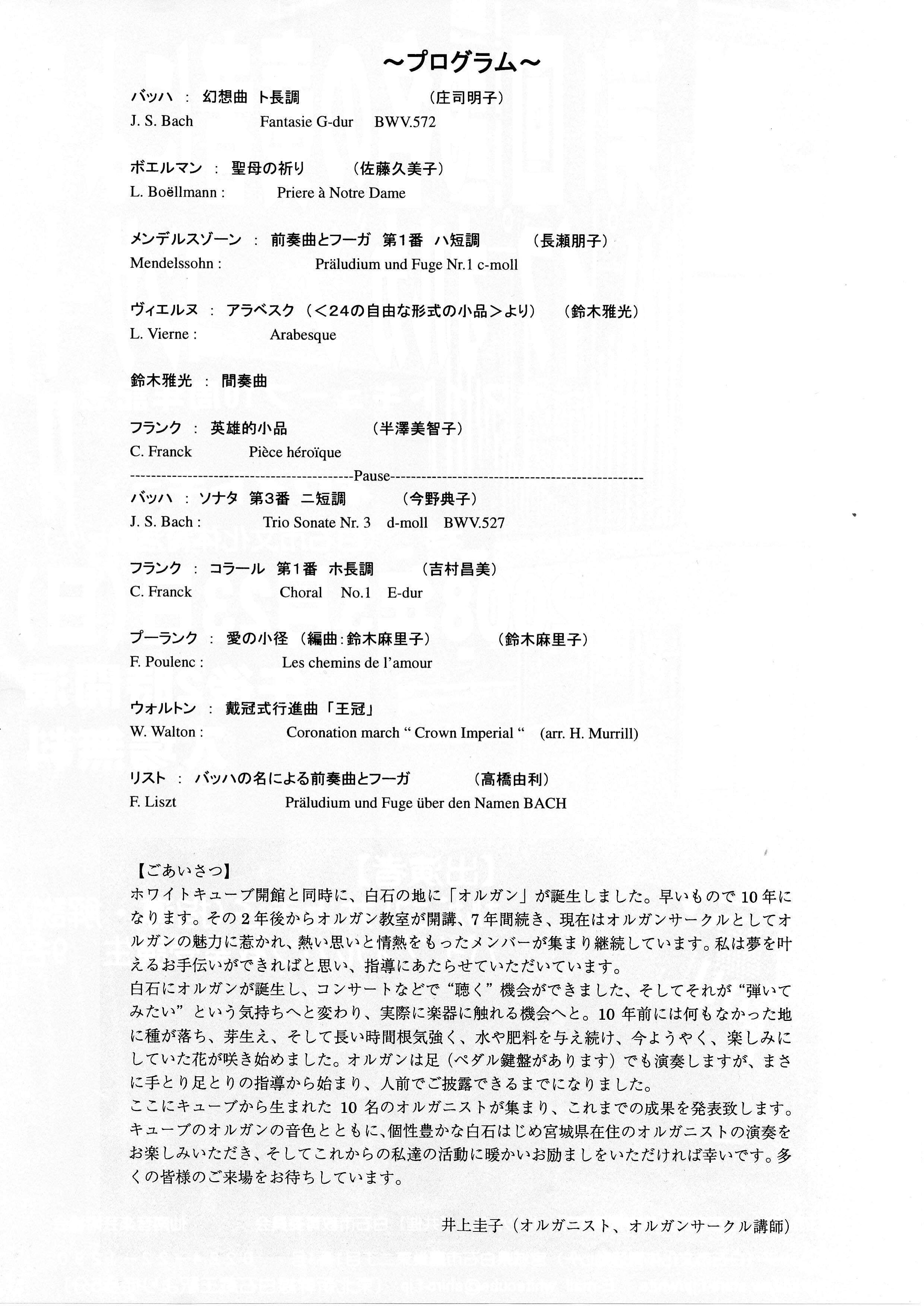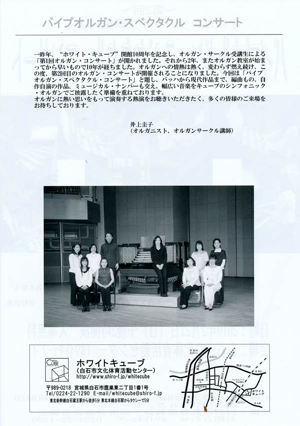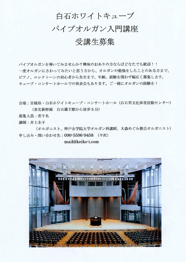 (1999. 7. 1.) 宮城県白石市キューブにて、8月より<パイプオルガン教室>が