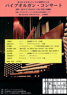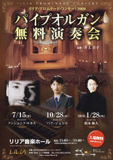 2015年4月から1年のラインアップが出揃いました。国内外の新進気鋭のオルガニストの演奏をお楽しみください、各回午後3時、7時開演です。