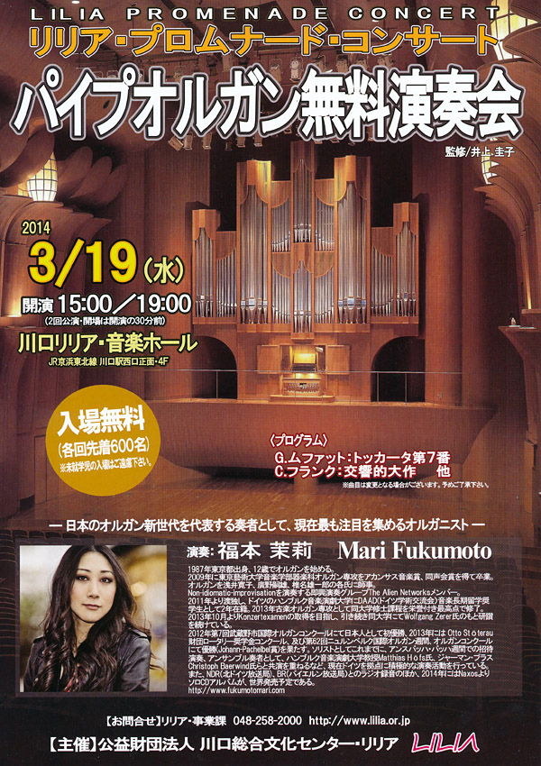 (2014. 1. 30.) 川口リリアホール<プロムナード・コンサート>(私が監修)2014年3月19日(水)