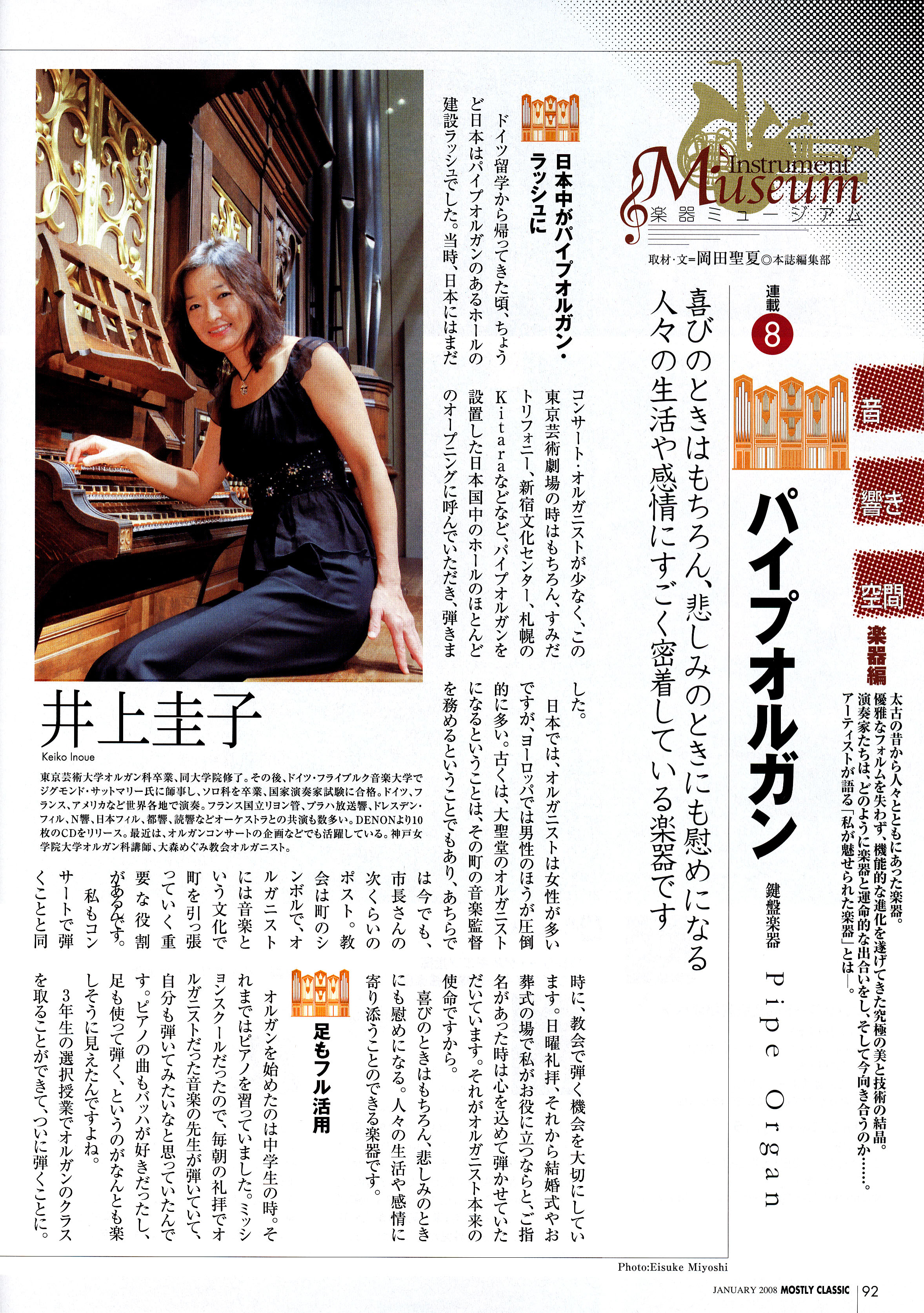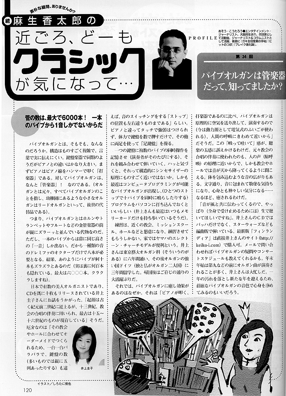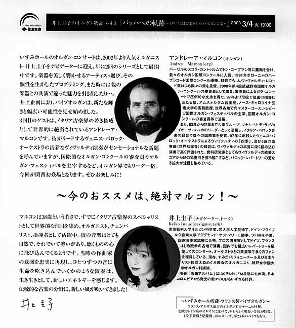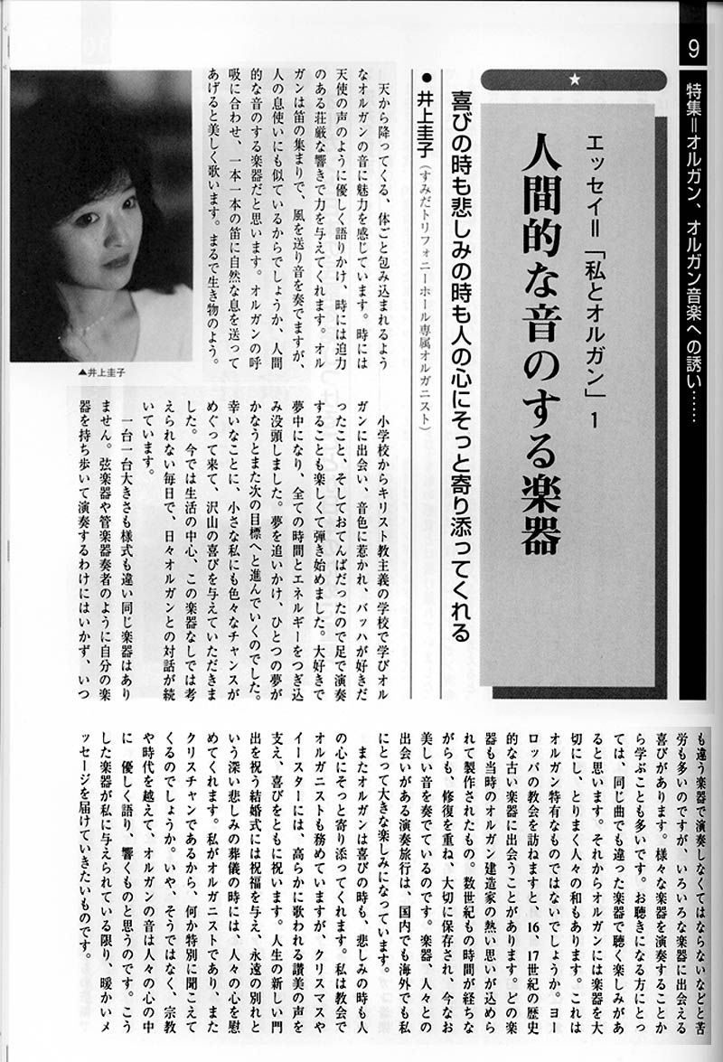 (2002. 3. 17.) いずみホールのページに、「井上圭子のパイプオルガンQ&Aコーナー」