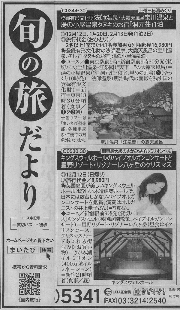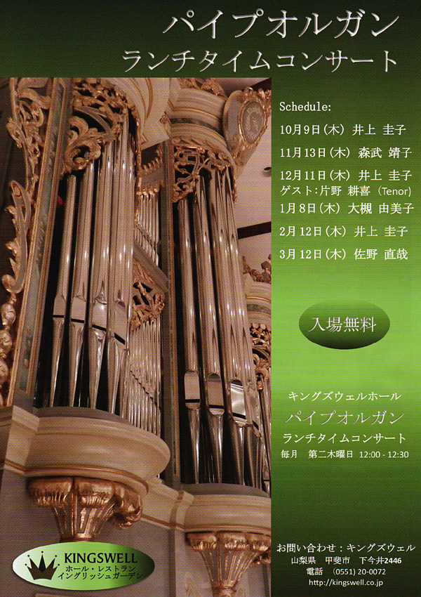 (2013. 11. 15.) 『キングスウェルホールのパイプオルガンと、星野リゾナーレ八ヶ岳のクリスマス』