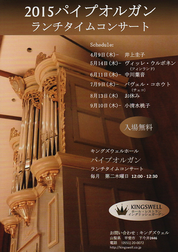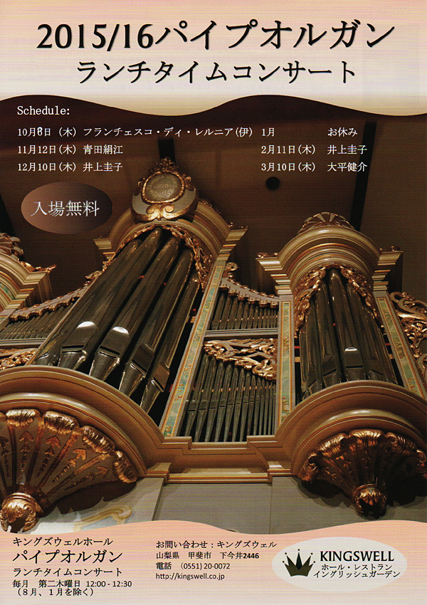 (2014. 9. 15.) 企画に関わらせていただいていますKINGSWELLホール<ランチタイム・コンサート>