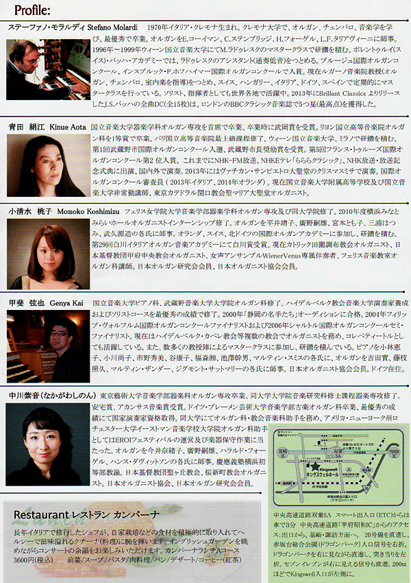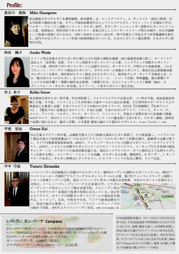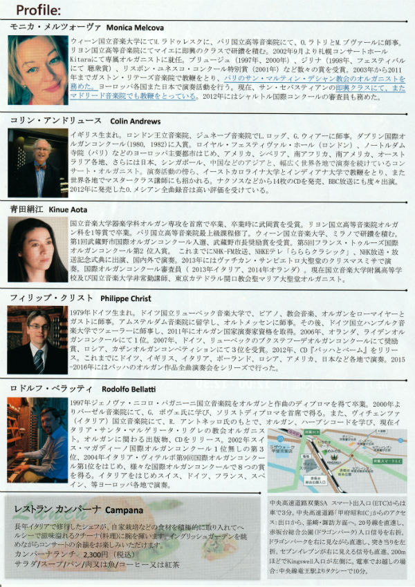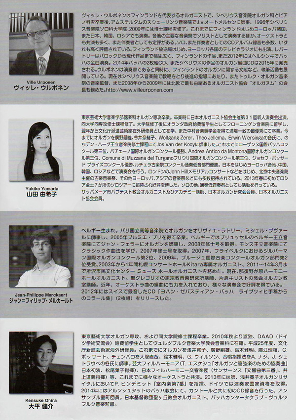 2015年4月から半年のラインアップが出揃いました。今回は若手オルガニスト、そして国際色豊かに。