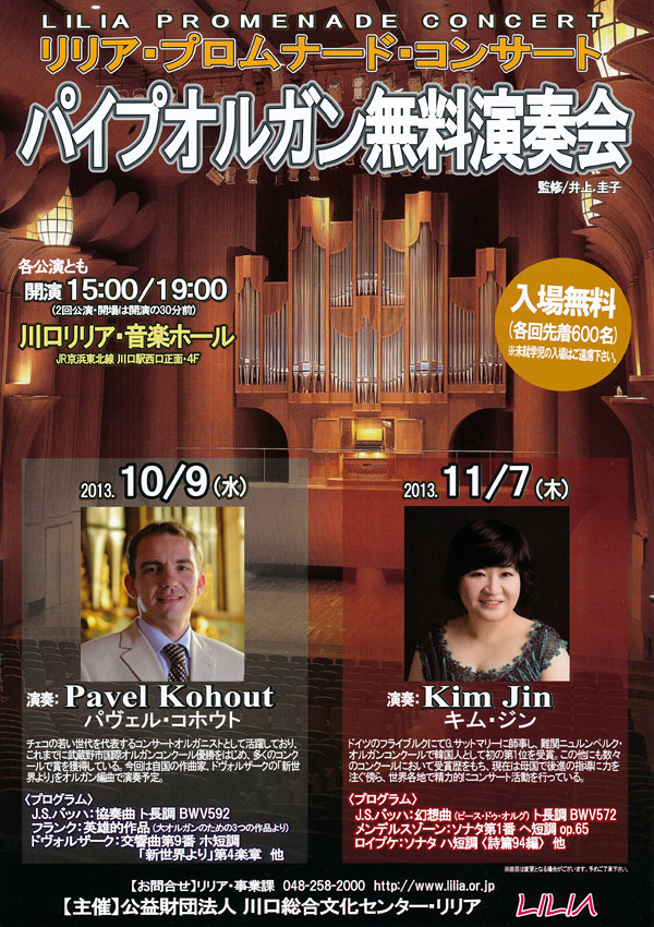 (2013. 9. 27.) 川口リリアホール<プロムナード・コンサート>(私が監修)2013年10月9日(水)