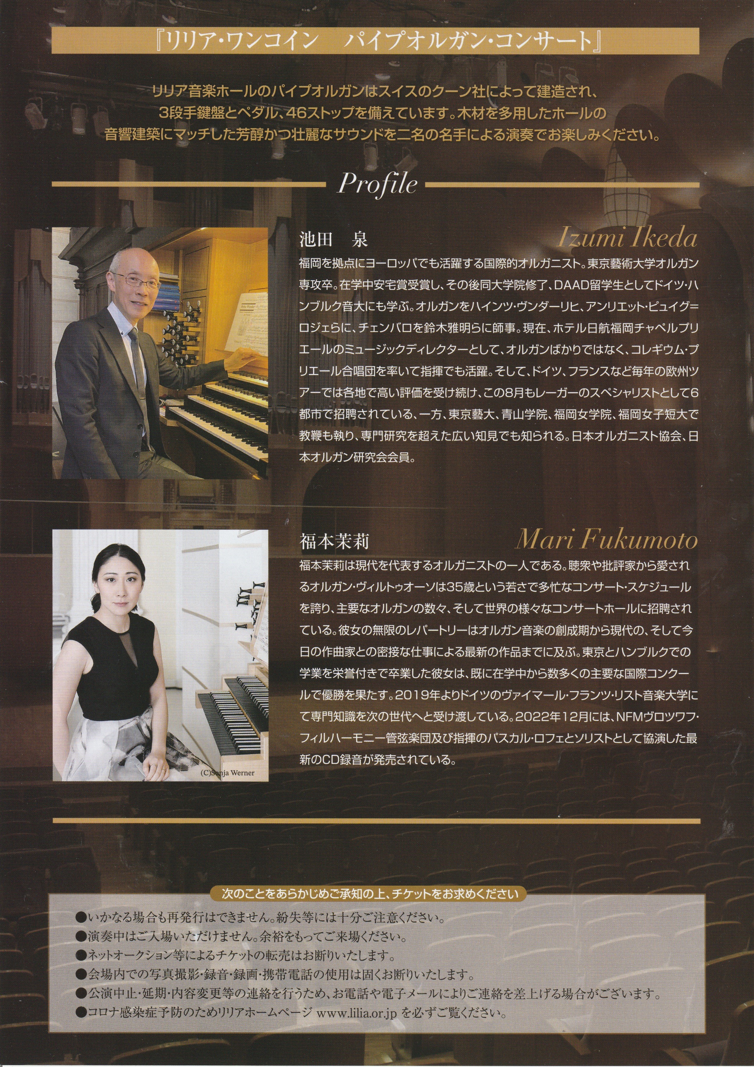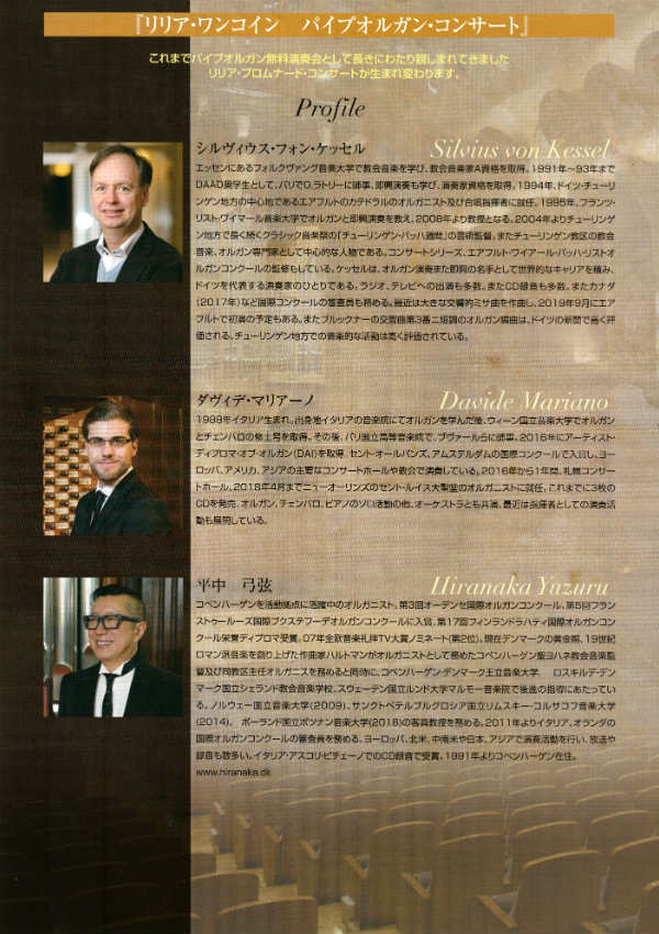 生まれてくるのです。こうした音楽堂のオルガンで、再び演奏できます機会を嬉しく思っております。