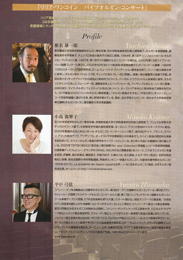 古典と現代のオルガンの可能性をお聴きいただければと思います。