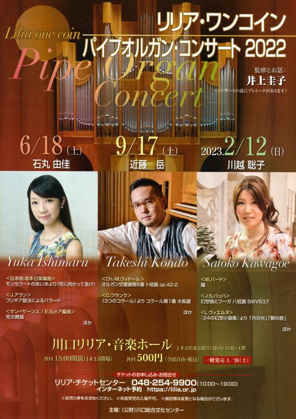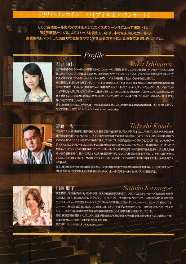 は、シャルトルコンクール優勝後、ヨーロッパで研鑽を積む新進気鋭のオルガニスト、石丸由佳さんが