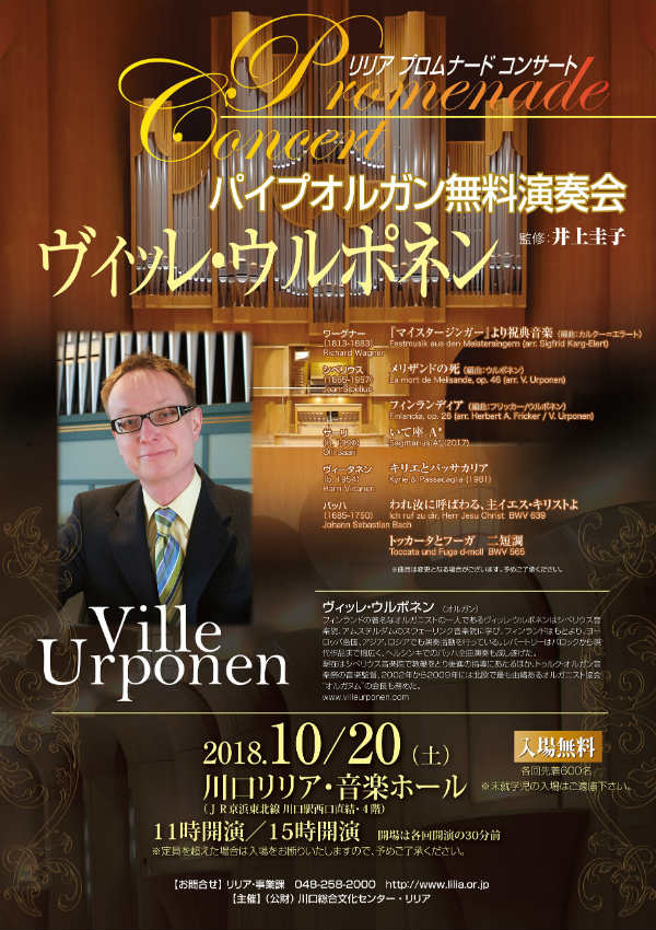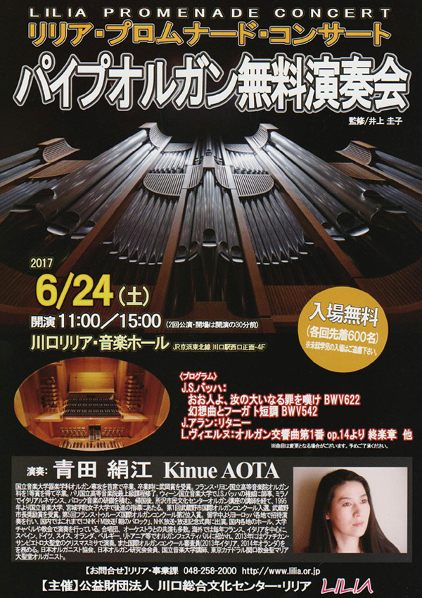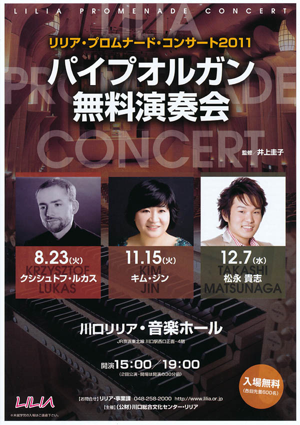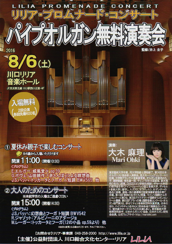 (2014. 9. 15.) 川口リリアホール<プロムナード・コンサート>(私が監修)2014年11月7日(金)
