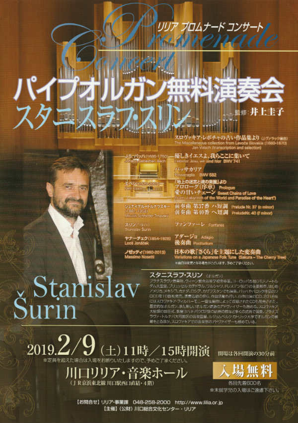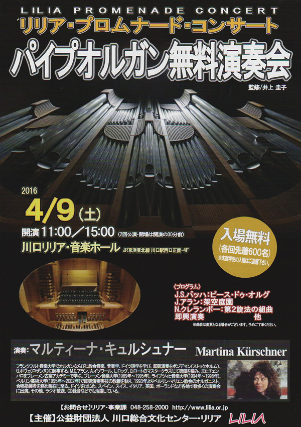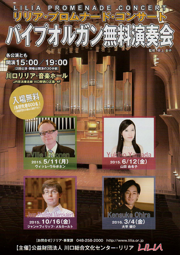 (2015. 1. 23.) 川口リリアホール<プロムナード・コンサート>(私が監修)2015年3月21日(祝)