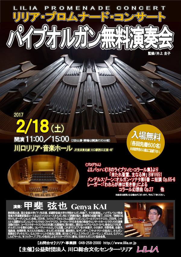 (2015. 2. 21.)企画監修をさせていただいています川口リリアホール<プロムナード・コンサート>