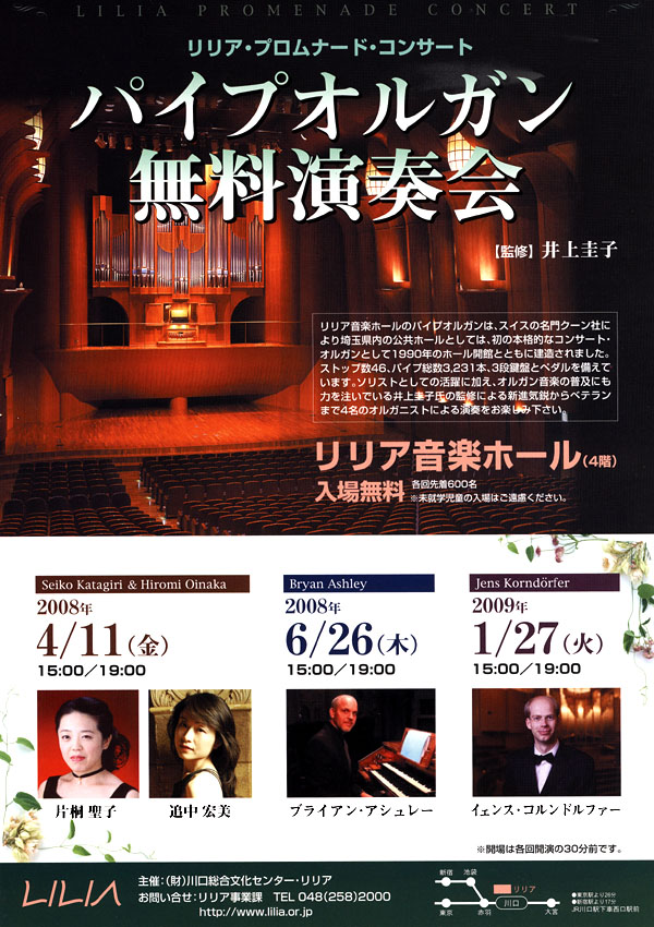 (2013. 3. 7.) 私が監修をさせていただいています川口リリアホール・プロムナード・コンサート(無料、午後3時、午後7時の2回)来年度の出演者が決まりました。