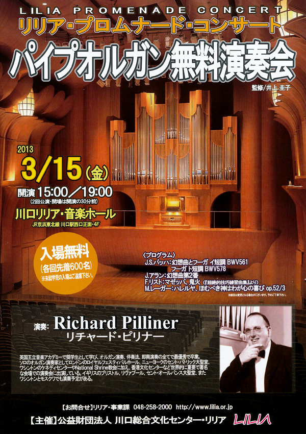 (2013. 2. 22.) 川口リリアホール<プロムナード・コンサート>(私が監修)2013年3月15日(金)