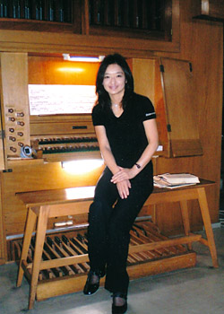 (写真はオルガニストを務める大森めぐみ教会のシュヴェンケデル・オルガンの前で。)