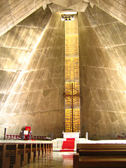 7秒という長い残響、日本のどこにもないような恵まれた響きの教会です。 久しぶりにカテドラルへ。懐かしさにかられながら会堂へ入る私。丹下健三さん設計のかっこいい建物、年月が経ってもいまなお斬新ですね。 すると、目に付いたのが遠くに置かれているオブジェ。「ざくろ」だ。近くまで行き作者を見ると「小坂圭二」・・やっぱり! 私の目は正しかった!小坂先生、、青山学院中等部時代の美術の先生、美術を習った先生なのです。 ざくろ形の彫刻でわかったのです。父の同僚でもあったので、我が家へも時々いらしてた、、そして同じ「圭」だね、、と 可愛がってくださった先生でした。不思議。製作年は40年前、、つまり以前からここにあったのですが、気付かなかった私。 これも年のせいでしょうか、以前見えなかったものが見え、気付かなかったことに気付いたり。 すでに天に召されていますが、先生と再会できたような、また見守ってくださっているかのような嬉しい 気持ちに。こんな風にリハーサルは始まりました。