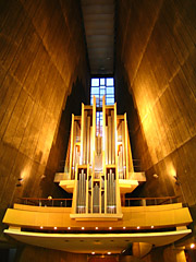 以前はロマンティックな音色の古いオルガンでしたが、2代目のオルガンは2004年に完成したマッショーニのオルガン。 イタリアの歴史ある名工のオルガンです。 繊細なタッチは表情豊かで、いつまでも弾いていたくなるような楽器です。でもさすがイタリア製〜、鍵盤が上がらなくなったり、 小さなトラブルですがいろいろと、本番前もペダル鍵盤に上がらない音が出て冷や汗ものでしたが、そこが イタリア製の魅了でもありますね、華奢なつくりでも壊れやすくてもイタリア製(私の場合、洋服や靴ですが、、そして オルガンも)魅力的でセンス良く、大好きです。