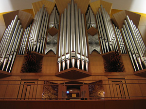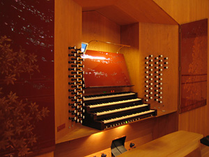 オルガンは、ベルリンのシュッケ製作の4段鍵盤の大きな楽器で、オルガンの扉と譜面台は、美しい漆、輪島塗です。 金沢の伝統工芸を用いた美しいケースは、世界に一つでしょう。