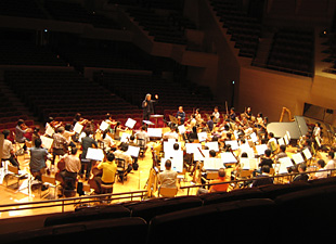 サントリーホールは、スタッフはじめ全ての動きがプロフェッショナル。楽屋入口だけでなく、 楽屋が並ぶ廊下にも警備の方が常に立っているのには驚きました。また演奏会中、ホールの廊下など 不審物など置かれていないか歩いてチェックしている警備の方もいました。(今回、演目の関係上、出入りが多かったので、 こうした楽屋の裏事情まで知る私・・)。 オルガンのリハーサル時にはステージ上の移動式演奏台も準備され、サウンド&バランスのチェックが出来ます。 実際の演奏台よりもより客席(お客様の耳)に近い所で聴きながらレジストレーション(音色を決める作業)が出来ます。そこで セッティングしたコンビネーションは、上の演奏台に連結していてそのまま有効、 オルガニストにとってはありがたく、贅沢な設備を兼ね備えています。