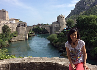 通過はマルカ、クーナ、ユーロ、国ごとに通過が代わり、頭クルクル。今回の旅の最中、旧ユーゴスラビア圏内で 通算5回国境を超えたのですが、EU加盟国でないので、国境越えの旅にパスポートの掲示を求められ、 時にはバスから降りて、出国、そして入国審査です。 さて最初に訪ねたボスニアの首都サラエボは、多様な民族色のある街、その次に訪れたモスタルはオスマントルコの 支配下であり、売っているものなどトルコにも似ていました。モスタルは16世紀に建造された美しいアーチ型の橋を中心に、 スターリモストを中心に広がる美しい石造りの街(写真左上)。グリーンのネレトヴァ川、水のある街。またこのあたり、 イスラム教とカトリック、つまりモスクと教会が共存していました。