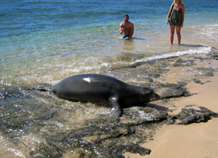 そう思いきや、現れたのはなんとシーモンク!!以前、南のポイプのビーチで浜にあがって居る
