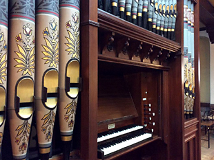 イギリスから時代と国境を超え移設されたコナッハー・オルガン。日本のオルガンの中でイギリスロマン派のオルガンは数少なく、