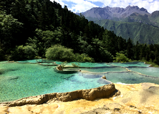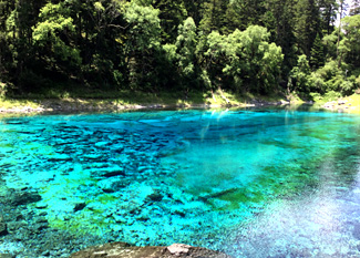 成田から成都まで飛行機で5時間半、成都は高層でモダンな建物が連立する大都会。 ここからバスで9時間、途中食事や休憩をとりながら、切り立った険しい山の中を走り、遠路、約12時間かかって九寨溝へ到着。 九寨溝は、原生林の中に湖沼が点在しチベット族が住む世界遺産の景勝地。(大袈裟ですが)これまでスイス、 オーストリア、イタリア、フランスなど世界の様々な所で美しい景色、美しい"青"を見てきましたが、 九寨溝のブルーとエメラルドグリーンの小沼を見た瞬間、涙した私です。 それほどに美しい青、光によってはエメラルドグリーン。湖の底まで見える透明な水、周囲の樹木が湖面に映り込む。 息を呑むような美しさ。また万年雪が溶け、勢い良く落ちる滝の水辺ではマイナスイオンを受けながら、自然の中を丸一日かけて歩く。