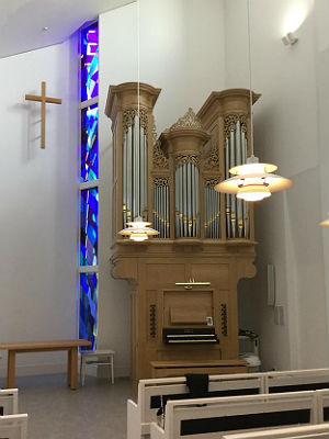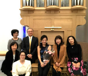 オルガンというのは一台一台違います、個性があります。手強いな、、と思う楽器も時にはありますが、 いつも心を楽器とひとつにして演奏しています。しかしこのオルガンは最初から心通じ、嬉しい感触のオルガンとの出会いでした。 そして何より嬉しく光栄だったのが、私が留学から帰国し、その翌年、初めて海外での大きな演奏会がドイツのボンでありました。 「現代オルガン音楽週間」という音楽祭で、私は全曲、邦人の作品で臨みました(と言いますか、それが主催者からの依頼でした)。コンビネーションのないオルガンで、 ドイツ人とアメリカ人の男性二人にアシスタントをしてもらい、これは私にとって結構大変な演奏会でした。この演奏会があった時に、 仙川教会の牧師でいらっしゃる大串肇先生もボンにいらして、覚えていてくださった、、ということ。そしてその ご縁もあって今回弾かせていただいた、ということです。 成城学園駅から甲州街道へ抜ける道沿いにあるこの教会、中学生の頃、この近くでテニスを習っていました。そして高校時代はオルガンの レッスンに毎週この教会前を通り、こんな日が来るとは思わず、オルガンに夢中になりレッスンに通っていた私がいました。 教会の存在は以前から知っていましたが、新しい礼拝堂が建ち、オルガンが設置されたのです。 真っ白で北欧の建物を思わされるような、ステンドグラスも美しい礼拝堂。天井が高く、よく響きます。何よりもオルガンの ストップひとつずつが全て美しく歌うこと。そして繊細なタッチを持ち、表現力豊かなこと。様々な細かな音楽的ニュアンスにも答えてくれます。 充分なリハーサル時間をいただきましたが、笛に送る風をコントロールし、一音一音に命を吹き込んでいく、音符が表情豊かな音へと替わっていく、 ああなんて楽しい作業でしょう!音楽創りに没頭しました。実に弾くことが楽しい楽器でした。