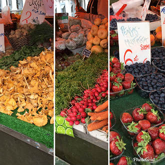 (右の写真は、ヘルシンキの市場で。旬のキノコ、苺もお甘くて絶品。) 今回、有難かったのが、まずどこの国よりも「水」が良かったです。ヨーロッパの他の国では経験なかったです。 ピュアな水で、もちろんミネラルウォーターなど必要なく、水道水が美味しく飲め、またキッチンでも冷たく、 シャワーの下でもフワフワ!!肌はすべすべ、髪もつやつやに。 それからお魚が豊富なこと。新鮮なお魚、お肉が手に入りました。野菜、果物、乳製品、パン、とても美味しく、 自然なのです。添加物やケミカルなものではなく、原材料や素材にこだわった食品ばかりでした。買ってきたサラダの葉を開けたら、 根付きどころか鉢に入っていて驚いたことも(一番下の写真)。ハーブも豊富で、特にディルは重宝しました。