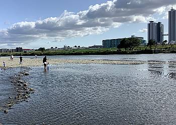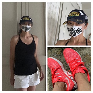 (右上の写真・・教会前に止まる私の自転車。) ひとつだけ言えるのは、今の私は留学中の私よりずっと元気で、健康なことでしょうか。毎日、夕方になるとこうした出で立ち、マスク姿でジョッギングへ。 (マスク大嫌いな私ですが、ハワイアン柄のお気に入りのマスク・・) これにサングラスですから、友人やジム友達とすれ違っても皆「だ〜れ?!」と。ソーシャル・ディスタンスで手を振るのみ。あるいは気付かない。自粛生活になってから、これは必要!と ネットで買ったお気に入りのランニング・シューズ。 毎日約5〜7キロのジョギング、続けました。何日かは長距離サイクリングに変わりましたが、その距離は20キロ以上。 走れ(ら)なかったのは、1か月半でたったの2日。一日中雨の日と、用事が出来て帰りが遅くなった日。教会へも3回、ジョギングで行きました、往復7キロ、1時間コースです、 ただし疲れてオルガンは弾けません、、(笑)。 我が家の前、魚が泳ぎ、水鳥が集まる川辺があり、子供たちが水遊び、、こんな所があったんだ、20年も住んでいて全く知らなかった。 歩く人、走る人、サイクリング、緑地ではフリスビーで遊ぶ若者たち、何とものどかな風景。忙しく時間に追われてる生活から離れ、 たまにはこんな生活、こんな時間も良いかなと。