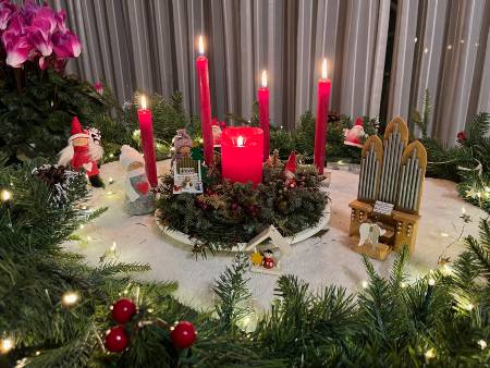 今年も早いものでクリスマスをお祝いする日となりました。アドヴェント・クランツにも5本の蝋燭が灯りました。 アドヴェント・クランツ、日本では余り馴染みがないかもしれませんが、 アドヴェント(待降節、クリスマス4週間前から始まる)の第1日曜日に1本の蝋燭に灯がともり、その後、日曜日が来る毎に1本ずつ蝋燭を灯していき、クリスマスには5本の蝋燭が灯るのです。
