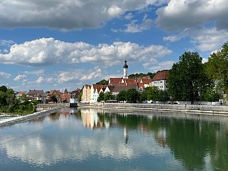 以前はドイツの列車は定刻に走っていたし、遅れた場合は乗り継ぎの列車が待っていてくれた、、今は全く違います。列車の車高は低くなり、 乗り降りは楽に、しかしながら相変わらず 駅にはエスカレーターやエレベーターがない、エスカレーターも修復中だったり、、階段のみ。プラットホームの一番端に身障者用のエレベーターがあれば、 まだまし。駅の端まで行ってエレベーターを探している時間もないほどのタイトな乗り換え時間。体の大きな人たちがみな大荷物を持って大移動、駅のホームを走り、階段を降り、そして登る。 宅急便も普及していないせいか、それは大変な様です。 乗り換えごとに大仕事、息も絶え絶え、、荷物は2つに分けるべきだったと、後から反省。何とか無事に、目的地ランツベルクに到着。 駅から予約してくださっているホテルまで800メートル、歩けるだろうと思っていたところ、なんと街はレヒ川を渡った高台! ネットで見ていた地図上ではこの高低差は気づかなかった私は、駅からタクシー、正解でした。 わあ、何て素敵な街!!カラフルな綺麗な家が立ち並び、到着した可愛いプチホテルは街の中央にある教会の真ん前。部屋に入り窓を開けると、目の前が教会。 ウキウキするような演奏会へのステイが始まりました。これはリハーサルにも便利。鍵を渡され、「3日間、どうぞご自由に」と。 この音楽祭、夏の間、毎週土曜日に開催されているのですが、後から主催者の方が、「ここで演奏するどんな有名オルガニストも、みなあの部屋ですよ」と。 今年の夏のフェスティヴァルには、ウィーン・マーシャルも演奏、私の大ファン、ウィーン・マーシャルもあのお部屋に泊まるのですね。