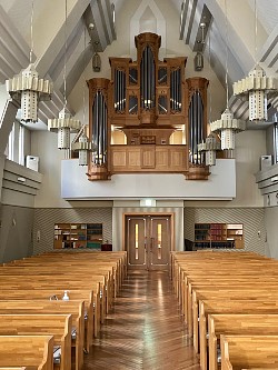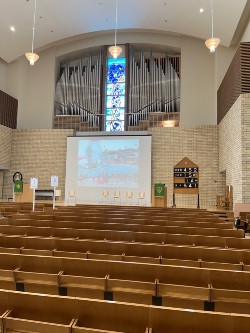 同窓生、同級生と共に礼拝を守り、そして演奏を聴いていただけたことは喜びでした。礼拝堂やオルガンは新しくなりましたが(右の写真)、