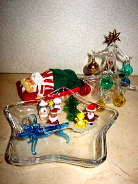 (右)イタリア、ムラノのガラスのクリッペで、光があたるととりわけ美しく、大変大切にしています。