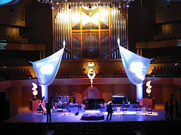 コンサートは12月3日から25日まで、全国6ケ所、9公演・・・横浜みなとみらい、九州厚生年金会館、 白石キューブ、大阪シンフォニー、墨田トリフォニ−、愛知芸術劇場・・・いずれもオルガンのあるコンサート ホールで開催されました。右の写真は第1回目の横浜みなとみらい ホールの公演終演後に写したもので、今回のミュージッシャン・メンバーです。(写真をクリックすると、 大きい画像でご覧いただけます。)